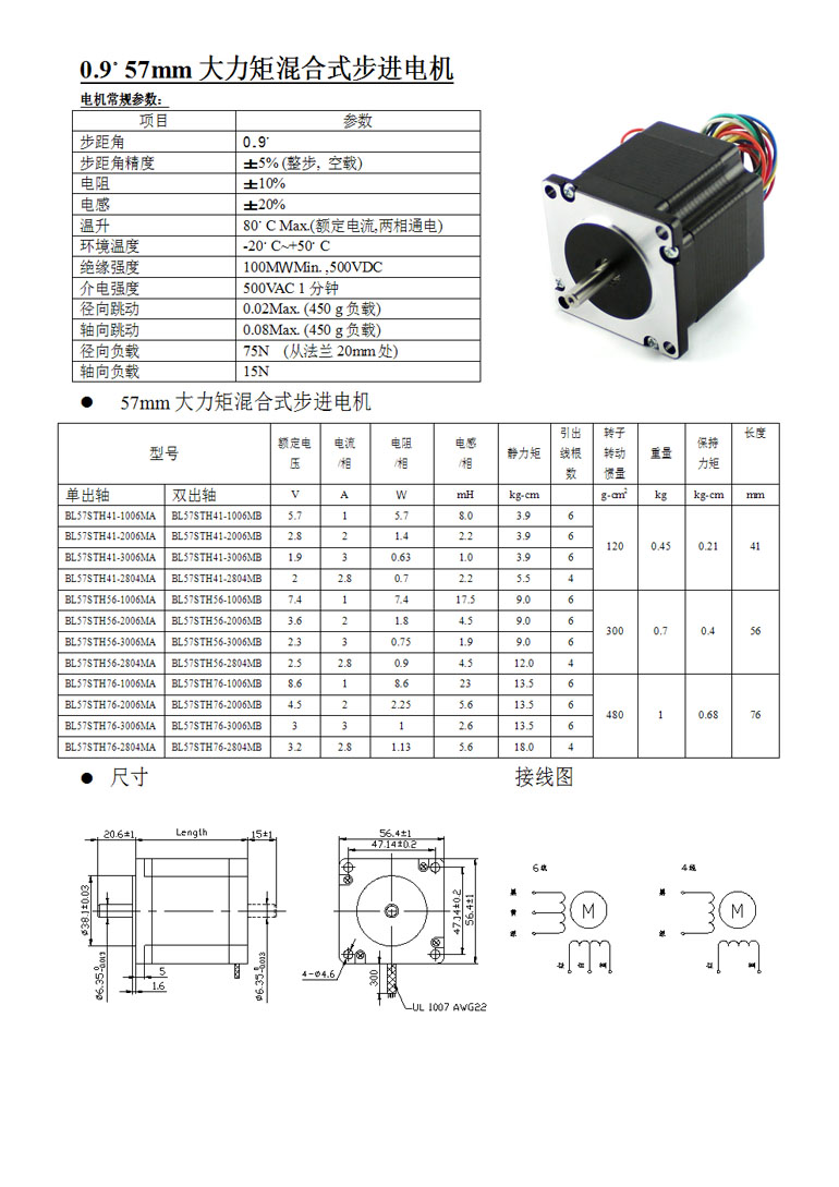 0.9°57mm兩相大力矩混合式步進電機